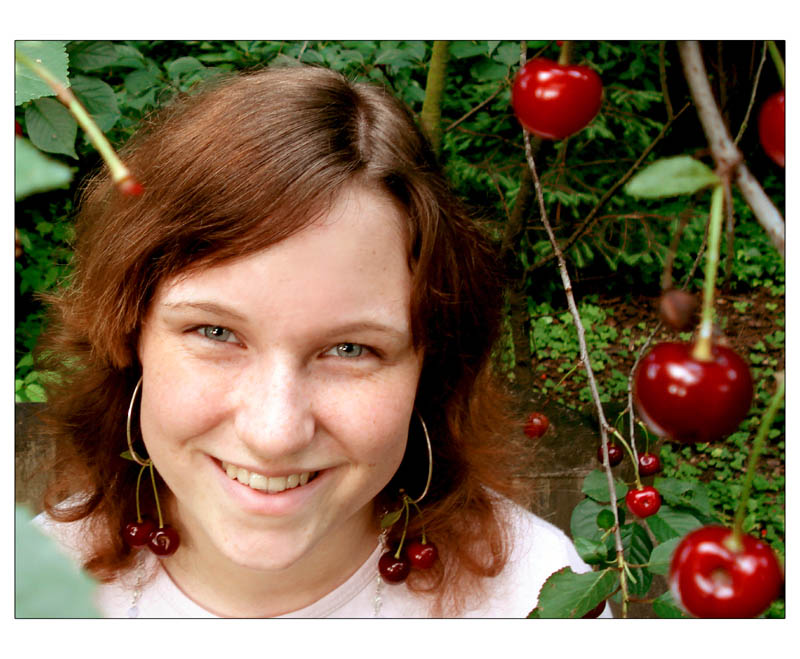 Very nice imagination. Who wouldn't like to taste her cherries?