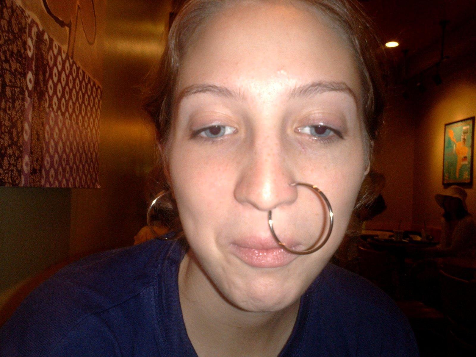 She put one of her hoops in her pierced nose!