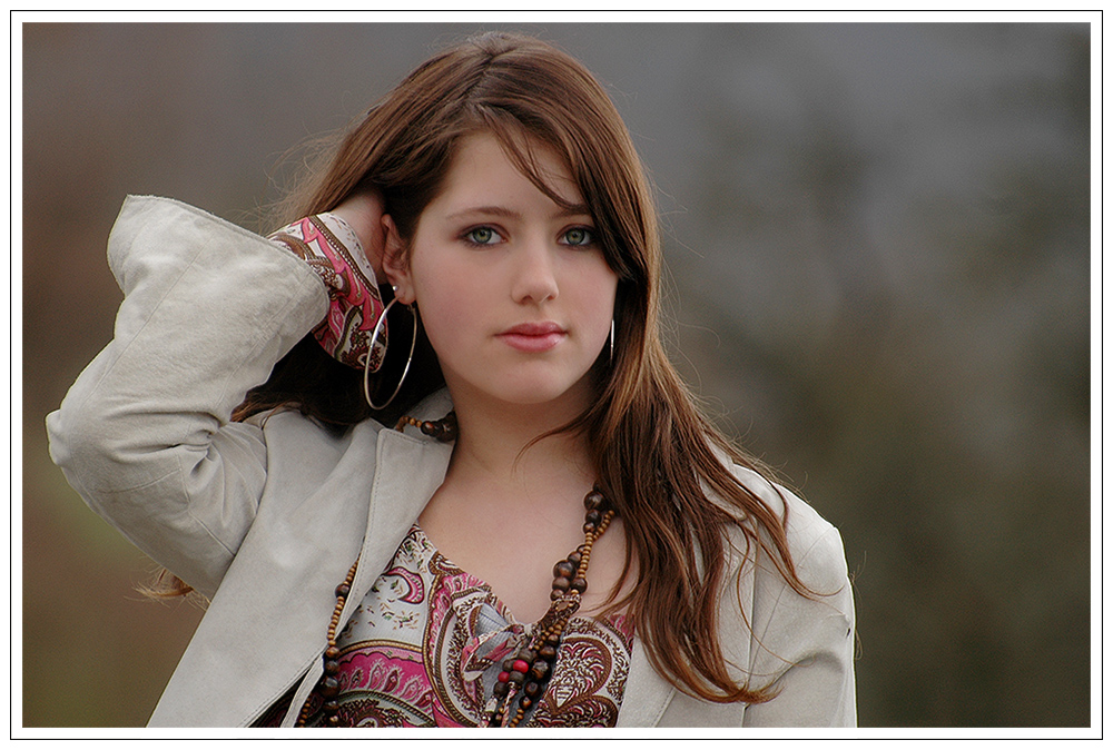 She lifts her hair to show her big hoops!